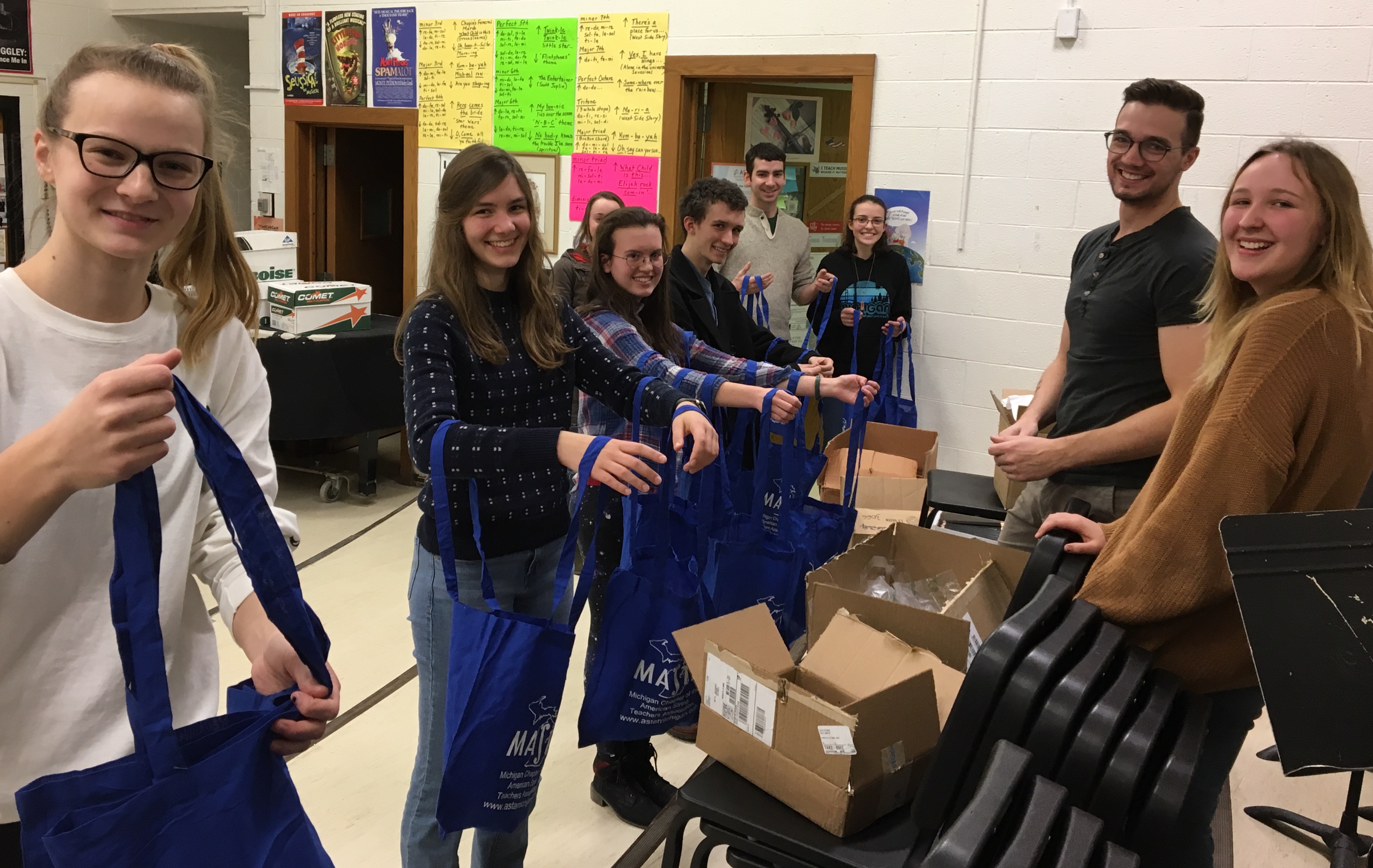 The Marquette HS student chapter, also known as the Fine Tuners, does a lot to promote string playing in their community. They assist with After-School Elementary Strings, Music Night at the Children’s Museum and other orchestra events. Today they helped stuff MASTA tote bags which will be available at the upcoming MMC. Thank you, Fine Tuners!