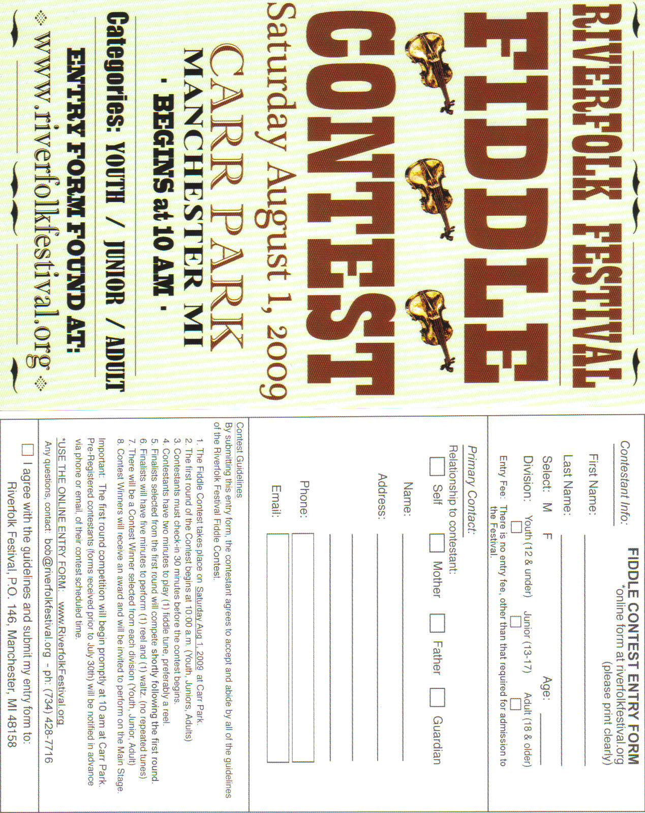 [Members] Fwd: Free participation Fiddle Contest at Riverfolk Festival August 1, 2009