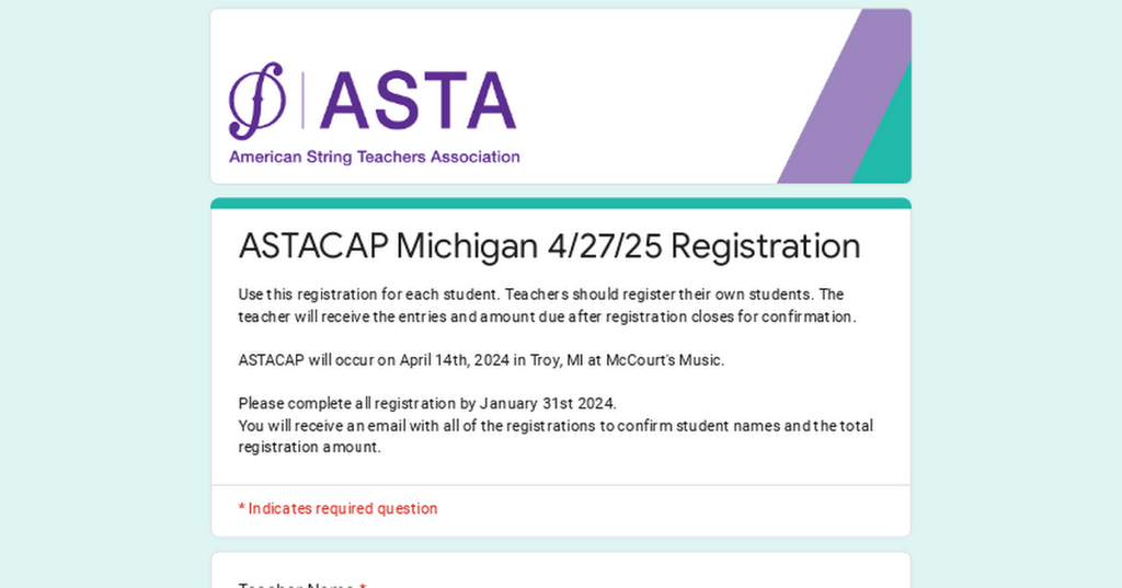 ASTACAP Michigan 4/27/25 Registration