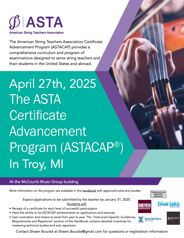 Currently, the event is open to violin, viola, and cello students. If you have double bass students who would like to participate, please reach out to me so we can discuss details and determine if accommodations can be made.