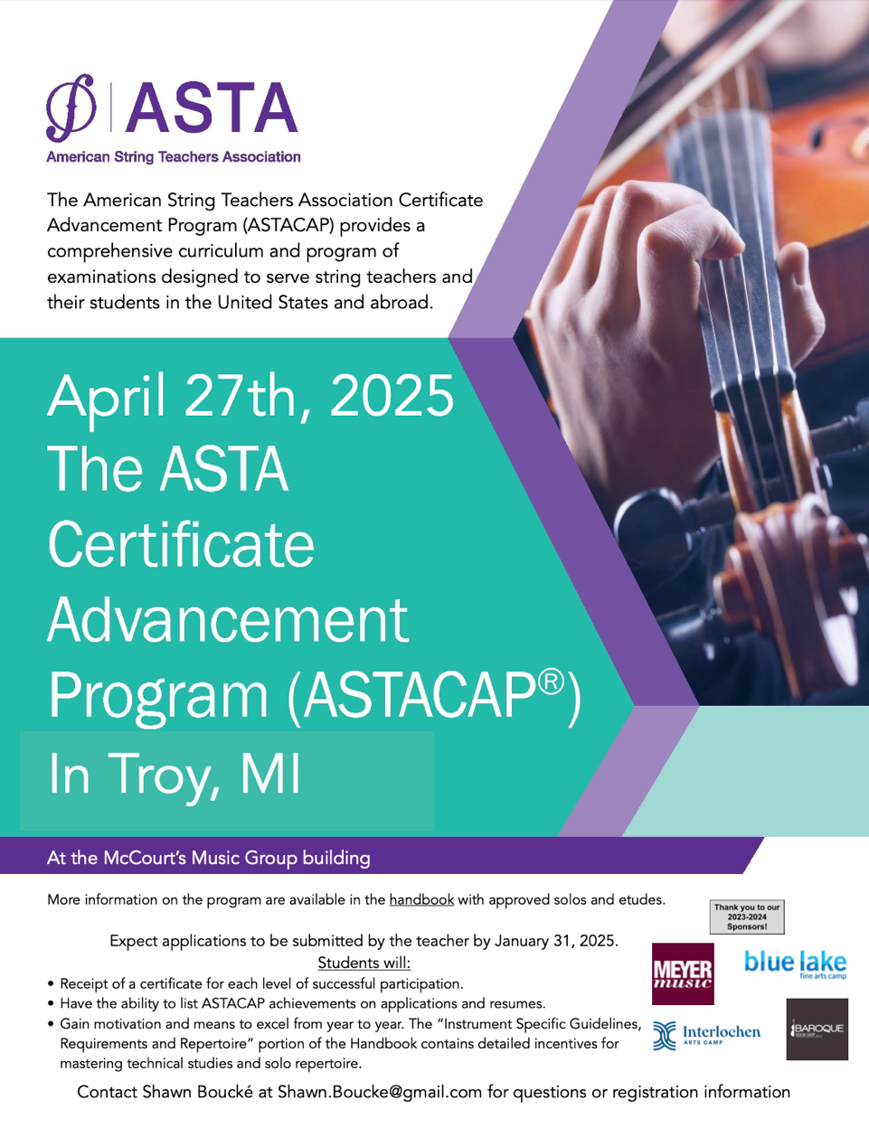Currently, the event is open to violin, viola, and cello students. If you have double bass students who would like to participate, please contact me so we can discuss details and determine if accommodations can be made.